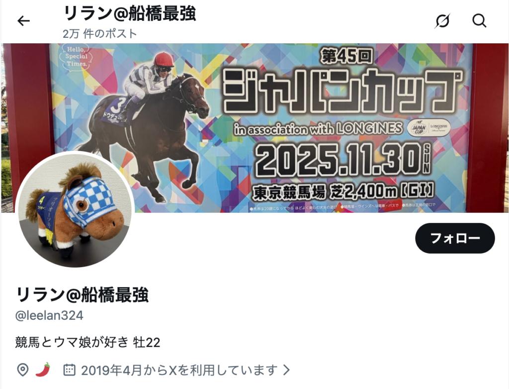 リランさんは、Xのプロフィールに「牡22」と記載しています。