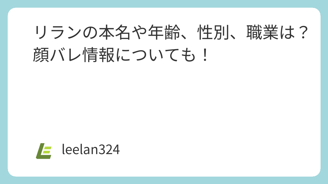 この記事では、リランさんの本名や年齢、顔バレや恋人の有無についてまとめてみました!
